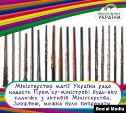 Министерство магии, было в шутку создано в сети в ответ на образование Министерства информационной политики, на своих страницах и Facebook, и Twitter не упускает случая посмеяться над работой украинского правительства: