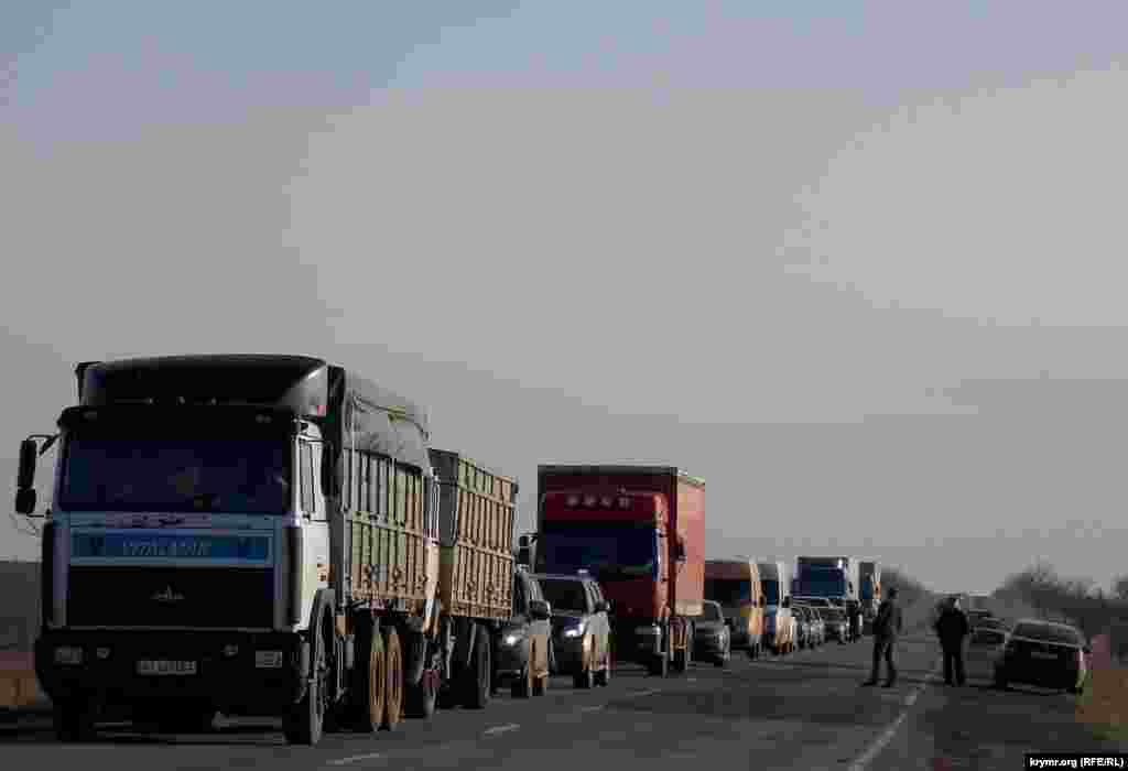 Оскільки віднедавна в анексований Крим припинився рух автобусів і поїздів, бажаючим перетнути «кордон» доводиться шукати інші способи проїзду. У кого немає можливості виїхати або в'їхати на півострів на особистому автомобілі, добираються до пунктів пропуску і переходять «кордон» пішки.