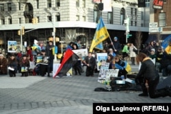 В Нью-Йорке прошла акция в поддержку украинской военнослужащей Надежды Савченко, находящейся под арестом в России по обвинению в причастности к гибели съемочной группы ВГТРК в Донбассе в июне 2014 года.