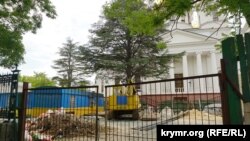 А о нынешнем «исправлении ошибки прошлых времен», то есть строительстве фактически «с нуля» Александро-Невского собора, похоже, никто точно не знает, когда оно завершится. Правда, в так называемом верхнем храме собора служба уже идет с прошлого года, хотя внутренние отделочные работы продолжаются, а к росписи еще не приступали. Рядом с храмом строители ООО «Крымстройиндустрии» (на снимке) возводят отдельные здания – для крещения и павильон. В последнем должны разместиться мастерские и магазины. «Если сам Путин вмешался в это строительство, – признался мне один из рабочих, к слову, приезжий с Сумщины, – то, думаю, за год справимся». Другой, сварщик из Симферополя, возразил, что точных сроков завершения строительства никто не устанавливал.
