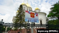 Не удержался, чтобы самопроизвольно не выведать у благоверной христианки вменяемых соображений о необходимости размещения по периметру ограждения храма аж трех массивных щитов – со стороны улиц Серова, Розы Люксембург и Долгоруковского обелиска – информации о патронате президента Российской Федерации Владимира Путина. Ведь раньше, вплоть до 2014 года, такой «патронатный» щит перед собором был только один. Сначала, как известно, на нем фигурировала фамилия главы крымского правительства Сергея Куницына, впоследствии президентов Украины Леонида Кучмы и Виктора Януковича (Виктор Ющенко такой «высокой» чести не был удостоен), крымского премьера Анатолия Могилева. «Так об этом как-то на службе сам владыка Лазарь (митрополит Симферопольский и Крымский, – авт.) обмолвился, – говорит женщина, – мол, через Аксенова попросил у Владимира Владимировича помочь в восстановлении храма. И тот не отказал, выделил значительную сумму – двести или даже двести пятьдесят миллионов рублей. И народ, мол, об этой личной опеке президента должен знать».