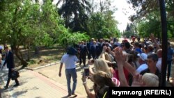 В момент, когда толпа препиралась с правоохранителями, на площадь забежали журналисты из «прокремлевского» пула. Поднялись на курган и местные политики во главе с губернатором Севастополя Сергеем Меняйло: в воздухе витало некое напряжение.