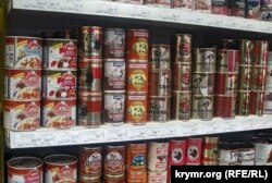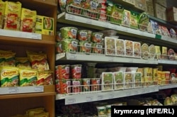 Колбаса, в основном, местная. Маркировка «Дружба народов», что видна на колбасе в витрине. Был крымский совхоз, теперь это мультирегиональная торговая марка, входит в агрохолдинг «Мироновский хлебопродукт». Мясокомбинат «Скворцово», снабжающий колбасными изделиями весь Крым, вообще принадлежит нынешнему министру сельского хозяйства Крыма в правительстве Аксенова Виталию Полищуку. Так что с колбасой проблем нет. На привозном или на своем мясе работают мясокомбинаты – не знаю, но колбас крымских брендов, причем довольно качественных, хватает. Ассортимент разбавлен, как видите, краснодарской продукцией, цены сопоставимы.