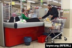 Мука, как и везде, крымская. А вот крупы тут дешевле, чем на рынке, процентов на 20-25. Гречка 52 рубля (17 гривень) за килограмм против 80 рублей (27 гривень) на рынке пару дней назад, вьетнамский рис – примерно так же. Так что, возможно, тут уже поставки и российские, без таможенных и пограничных взяток.