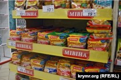 Что еще остается украинского? Сахар, крупы, мясо – и то я не уверен, что это все исключительно украинского происхождения. Остальные продукты в «Яблоке» продаются уже практически одни российские, а такие изыски, как «Мивина», подсолнечное масло и растительные консервы украинского производства выкладываются на витрины, похоже, лишь для ассортимента.
