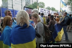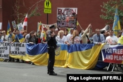 После двухчасовоой манифестации демонстранты двинулись маршем к зданию Дипмиссии России и Беларуси в ООН. В акции приняли участие около трехсот человек.