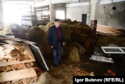 Во втором здании навалены сено, доски, строительные материалы, пластиковые окна. Акчай закуривает сигарету: "Мы здесь начинали новый коровник делать, ремонт затеяли, но сейчас у меня нет времени, – показывает он каркас деревянного вольера, свисающие с потолка лампочки. – Здесь должно было стоять еще 50 коров. Мы могли тут за неделю сделать все, но сейчас уже нет возможности".