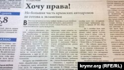 «Крымская газета» в статье «Хочу права» рассказывает о том, что в России вступили в силу новые правила для приема экзаменов у выпускников автошкол, однако большая часть крымских автодромов не готова к экзаменам.