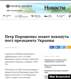 А сайт российского канала «Рен-ТВ» сначала сообщил, будто бы СМИ написали об отставке Порошенко из-за болезни, а чуть позже – что «Порошенко из-за болезни готов «продать» пост президента».
