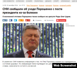 Во вторник российские СМИ, ссылаясь на украинские издания,распространили информацию о якобы отставке президента Украины Петра Порошенко из-за болезни. Однако украинские СМИ об этом ничего не сообщали. В последнее время это утверждал бывший представитель Партии регионов и «деятель» так называемой «Новороссии» Олег Царев, сбежавший в Россию.