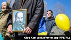 Глава Украинского культурного центра в Крыму Леонид Кузьмин еще в феврале уведомил симферопольских чиновников, что вечером 9 марта около 20 активистов планируют собраться у памятника Тарасу Шевченко. Через восемь дней ему прислали ответ – просьбу переделать заявку в соответствии с российским законодательством.