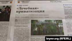 «Крымская газета» пишет о решении подконтрольного России правительства Крыма подготовить 11 санаториев к передаче под инвестпроекты либо к приватизации.