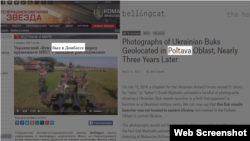 Расследователи Bellingcat пишут, что эти снимки были сделаны не на Донбассе, а возле города Миргорода в Полтавской области, и человек намеренно указал неверную геолокацию