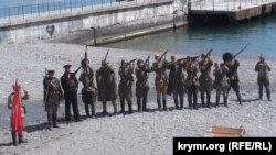 Реконструкция освобождения от немецко-фашистских захватчиков добралась и до набережной Ялты. Горожанам показали сцену освобождения – бой партизан с немцами.