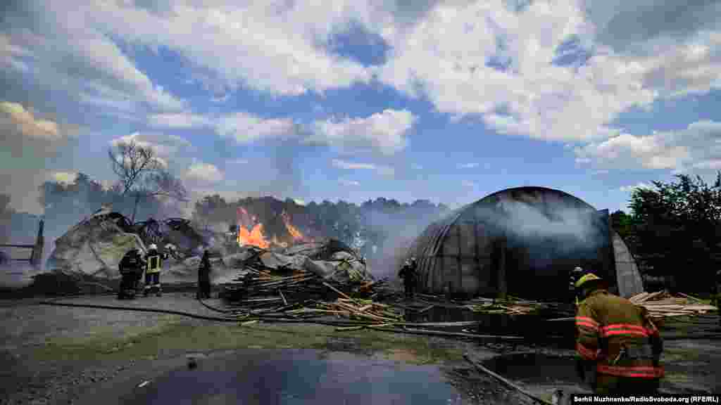 В Броварах под Киевом 5 июня загорелись склады с пиломатериалами на территории бывшей оптовой базы. По данным пресс-службы ГСЧС, горели два отдельно стоящие складские помещения на территории около 1500 квадратных метров. Жертв и пострадавших нет. Пожар тушили 40 человек личного состава с помощью 10 единиц техники.