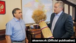 Крымские аграрии подарили Аксенову сноп колосьев – символ урожая.