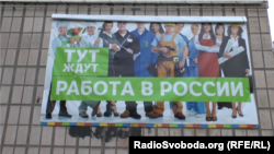 Сегодня тотальная безработица после войны – главная проблема оккупированных территорий. Уличная реклама поощряет бывших сталеваров и шахтеров ехать на заработки в Россию.