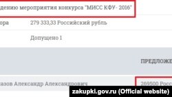 По данным российского портала госзакупок, в прошлом году Попазов освоил 269,5 тысячи рублей на оказании услуг по техническому обеспечению конкурса «Мисс КФУ», разработке сценария, визуальному и рекламному сопровождению.