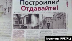 Еженедельник «Крымский телеграф» в статье «Построили? Отдавайте!» сообщает об истории, в которой оказалось одно из крымских предприятий. Получив в собственность земельный участок до аннексии, фирма лишилась его и расположенного на нем строения уже по иску Министерства обороны России. Предприятие обжаловало это решение в подконтрольном России Арбитражном суде Симферополя, но там не обнаружили нарушений со стороны военного ведомства. В итоге Минобороны забрало через суд все здание в центре Симферополя. Представители фирмы вновь намерены обратиться в суд, чтобы обжаловать этот приговор. «Частному предприятию бороться правовыми путями с такими организациям, как Министерство обороны России, Совмин, Министерство имущества и земельных отношений, с прокуратурой, мягко говоря, опасно» ‒ отметил представитель фирмы.