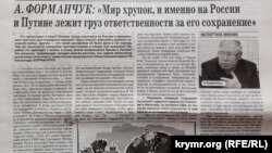 «Крымские известия» опубликовали интервью с крымским политологом Александром Форманчуком. Среди прочего он рассуждает о перспективах в случае возвращения Крыма в состав материковой Украины. «Путин, принимая решение по Крыму, прекрасно понимал, какие последствия это вызовет. И никогда не пошел бы на такой шаг, если бы в Киеве не произошел государственный переворот, а Крыму не угрожало кровавое развитие событий. Это была вынужденная мера со стороны России, – заявил Форманчук. – 4 года показали, что наш президент сработал на упреждение и обезопасил южные границы страны. Без Крыма не было бы и успешной операции в Сирии. Но глупо думать, что, вернув Крым Украине, можно разрядить ситуацию в мире. Увы, на нас давят, пытаются расколоть. С одной целью – добиться необратимых процессов дезинтеграции российского государства. И каждый из нас в своем городе или поселке, в своем регионе должен осознавать ответственность за сохранение нашей страны», – заявил политолог.