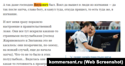 «А так даже господин Янукович был. Взял и вышел в люди из изгнания ‒ и так после матча, слава богу, и канул туда, откуда пришел, то есть туда же, в изгнание», ‒ говорится в материале. Фото или видео в подтверждение в этом материале отсутствует.