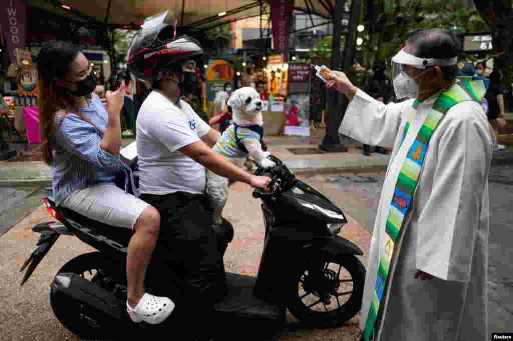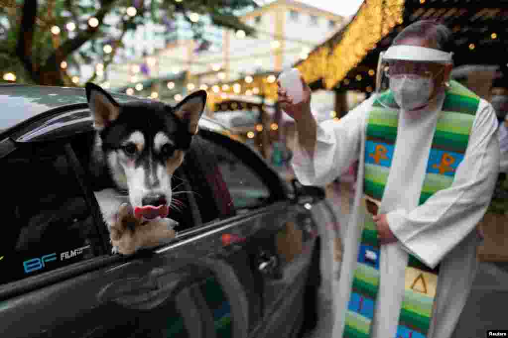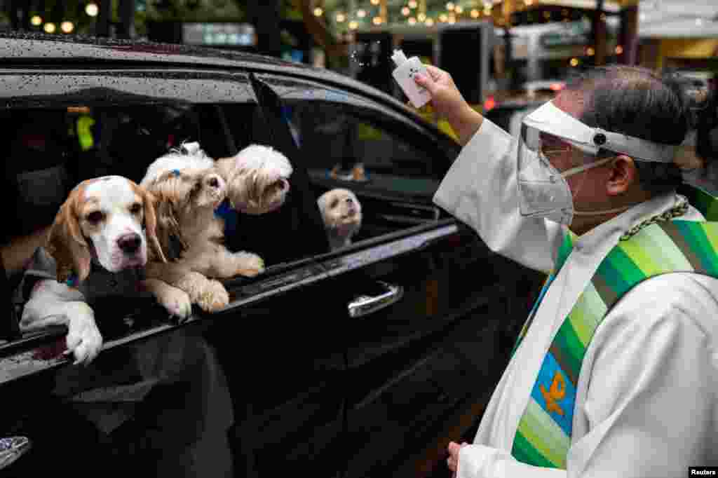 В воскресенье, 3 октября, накануне Всемирного дня животных в городе Кесон-Сити на Филиппинах священники благословили домашних животных. В связи с ограничениями из-за коронавируса, владельцы домашних любимцев привезли их автомобилями, одну собаку – на мотоцикле.