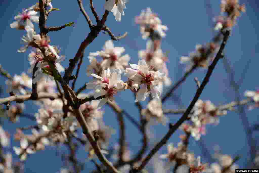 Традиционно миндаль в Севастополе растет не только в парках и скверах, где его высаживают коммунальные службы для красоты, но и вдоль больших дорог и в спальных микрорайонах. В Севастополе растет и белый и розовый миндаль, но белого - больше. Немногие жители Севастополя в комментариях корреспонденту Крым.Реалии признали, что они используют плоды миндаля в кулинарии или народной медицине тогда как большинство (жителей) удовлетворяется тем, что наблюдает его цветение весной. Севастопольцы верят, что война обойдет их город стороной. Есть и примета: миндаль цветет, значит приходит крымская весна. Покрывшаяся цветом в марте крымская слива-алыча напротив часто растет возле частных и многоквартирных домов, где местные жители высаживают ее в расчете на будущий урожай. Многие цветущие деревья - и миндаль и алыча - издают приятный аромат, подтверждая, что весна вступила в свои права. Севастопольцы наслаждаются мирной жизнью.