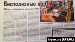 «Крымская правда» в статье «Бесполезные карты» пишет о том, что банковские карты Visa и MasterCard из-за санкций принимают не во всех магазинах полуострова. «К примеру, один из крупнейших гипермаркетов Симферополя «Ашан». К оплате там принимают только карты «Мир». Каждый, кто об этом не знает и планирует расплачиваться за покупки картой Visa, неизбежно попадает в глупую ситуацию, – отмечает газета. – Это, конечно, несмертельно, но неприятно. При этом внятного ответа на вопрос «Почему не принимают к оплате карты этих платежных систем?» никто не дает». Аналогичная ситуация, по информации газеты, наблюдается в ряде других магазинов. В то же время, как заверили в Госдуме России, технически никаких проблем с использованием карт зарубежных платежных систем в Крыму быть не должно. «Можно предположить, что некоторые магазины сознательно принимают решение не принимать эти карты и таким образом поддерживают антикрымские санкции», – считает КП. Редакция предлагает правительству разобраться с такой «самодеятельностью», а «чужих «санкционщиков», таких как французский «Ашан», надо просто выгнать из Крыма».