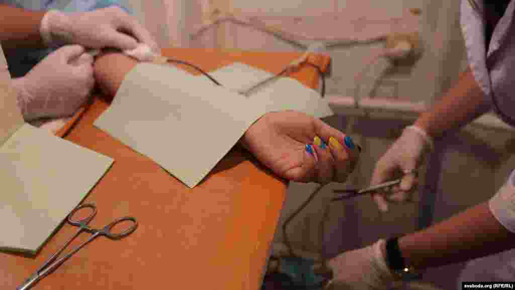 Белорусские и украинские футбольные фанаты сдали 5 сентября кровь для людей, пострадавших в зоне боевых действий в Украине.