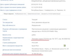 Федеральное государственное унитарное предприятие «Крымская железная дорога» инициировала около 50 аукционов по продаже имущества предприятия почти на 40 миллионов рублей, заявленных как начальная цена всех лотов.