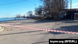 Порт в Феодосии после взрыва оцеплен. Прохода нет и на прилегающие территории. Везде можно наткнуться на красно-белые полосатые ленты, которыми огородили закрытые участки набережной.