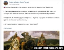 В соцсети «ВКонтакте» группа «Новости Керчь Крым Россия», которую администрирует пророссийская крымская журналистка Вероника Котькова, которая открыто поддерживала ЧВК «Вагнер» и российское вторжение в Украину, утром в субботу появилось сообщение, в котором предлагается объединиться «лидирующим единицам»:
