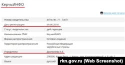 Сайт «КерчьИнфо» появился в Керчи уже в российских реалиях. По данным Роскомнадзора, он был зарегистрирован в июне 2018 года как сетевое издание с территорией распространения «Россия и зарубежные страны».