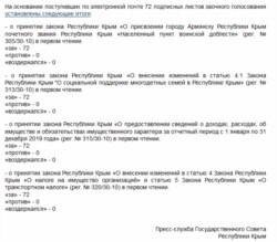 24 апреля пресс-служба крымского парламента сообщила об итогах заочного голосования депутатов, в рамках которого они утвердили четыре проекта «закона».