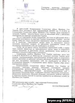 Относительно крымчан, которые остаются жить на полуострове, пресс-служба командования Сухопутных войск заявила: «Лица, не имеющие статус внутренне перемещенного лица, в первую очередь, должны обратиться в территориальный орган труда и социальной защиты населения, по месту фактического проживания, потом прибыть в районный (городской) военкомат».