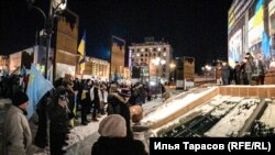 Как сообщает корреспондент Крым.Реалии, в центре Киева собралось более 200 человек.
