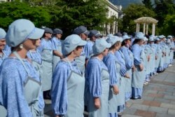 На городской набережной Ялты 23 июня к «присяге» привели местных дворников. Работники давали «клятву чистоте» в новой, специально пошитой спецодежде, стилизованной в русском стиле ХIX века, сообщает корреспондент Крым.Реалии.