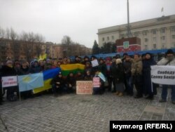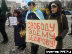 В Херсоне 12 января прошел митинг в поддержку арестованного в Крыму крымскотатарского активиста Эдема Бекирова и всех «незаконно задержанных граждан Украины». Об этом сообщает корреспондент Крым.Реалии.