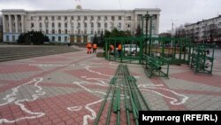 В Симферополе на площади Ленина рабочие коммунального предприятия «Город» с утра начали собирать металлический каркас главной новогодней елки Крыма, сообщает корреспондент Крым.Реалии.