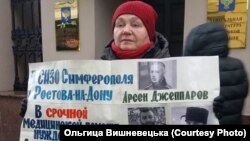«Число людей в СИЗО Симферополя и Ростова-на-Дону, нуждающихся в помощи, растет. Люди находятся в очень тяжелых условиях: в камерах антисанитария, камеры переполнены, люди спят по очереди. То, что происходит в симферопольском СИЗО – это нарушение даже нашего (российского – КР) законодательства. Мы видим, что на наши плакаты хорошо реагируют прохожие, даже те, которым не интересна судьба крымских татар. Но когда видят, что человек – заключенный и есть угроза его здоровью, это вызывает отклик», – отметила участница пикета Любовь Сумм.