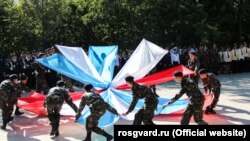 В Севастополе бойцы российского спецподразделения СОБР «Сокол» местного управления Росгвардии приняли участие в церемонии открытия финала военно-патриотической спортивной игры «Рубеж-51», и провели для школьников демонстрацию задержаний, выставку оружия и обмундирования.