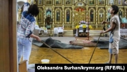 Прихожане устраняют последствия дождя в храме Симферополя (видео)