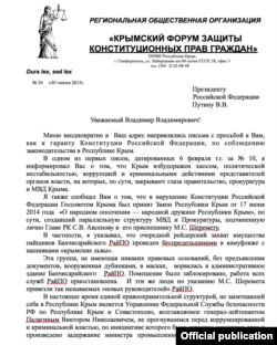 В связи с этим крымский политик просит Владимира Путина поручить соответствующим структурам рассмотреть факты завладения «народным ополчением» Крыма санаториями, производственными и другими объектами.