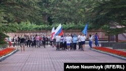 В Симферополе в парке им. Ю. А. Гагарина у мемориала «Могила неизвестного солдата» утром 16 мая стартовала крымская ветка факельной эстафеты «Бег мира», участники которой должны финишировать в Керчи 21 мая. Как сообщает корреспондент Крым.Реалии, факел эстафеты зажгли от Вечного огня.