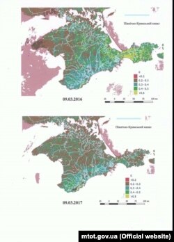 По состоянию на 2017 год, в сравнении с 2014 годом, общая площадь покрытых «здоровой» продуктивной растительностью участков в аннексированном Крыму уменьшилось в 6,7 раз, а объемы выращивания озимых культур на территории Крыма в период 2014-2017 годов сократились на 85 процентов.