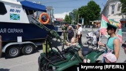 В центре Симферополя проходят мероприятия, приуроченные к празднованию Дня российского пограничника. На площади им. Ленина организовали выставку военной техники, стрелкового вооружения, которыми располагают подразделения Погрануправление ФСБ.