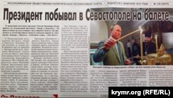 «Крымская правда» сообщает о визите в Севастополь президента России. Владимир Путин приехал на музыкальный фестиваль «Опера в Херсонесе». Он присутствовал на гала-концерте звезд мирового балета. Издание отмечает, что музыкальный фестиваль Путин посещает во второй раз. В прошлом году он приезжал с премьер-министром России Дмитрием Медведевым, однако на этот раз вместе с ним были вице-премьер Ольга Голодец и полномочный представитель президента России в Южном федеральном округе Владимир Устинов. Издание пишет, что выступлением артистов Путин остался доволен, отметив, что увиденное им талантливо и красиво. Свое мастерство демонстрировали лучшие балетные труппы России и зарубежья, а также танцор с Кубы. В программе концерта были постановки балетной сцены: «Лебединое озеро», «Буржуа», «Диана и Актеон», «Парк», «Пламя Парижа», Borderlands.