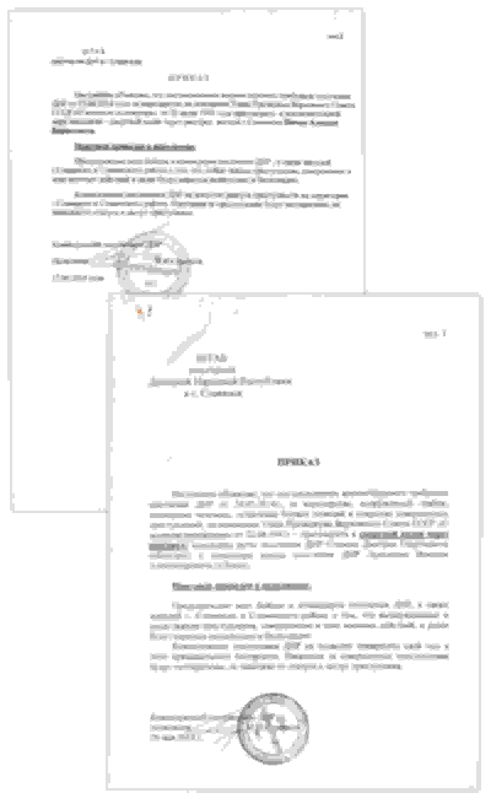 Эта подборка документов показывает попытки поддерживаемых Россией сепаратистов придать, несмотря на их в целом низкую дисциплину, видимость порядка царящему сумасшествию, легитимизировать вооруженный захват украинской территории и провозглашение независимости "Донецкой народной республики" от Киева.