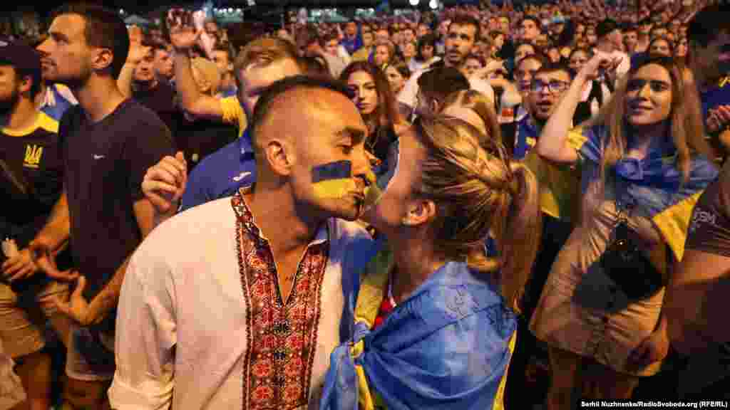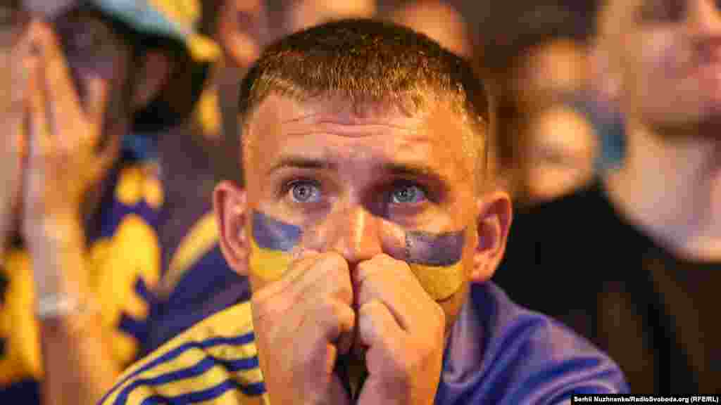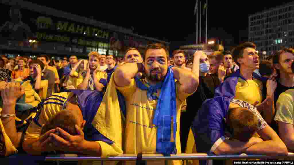 Сборная Украины по футболу на четвертьфинальной стадии прекратила участие в Чемпионате Европы. Со счетом 0:4 украинцы уступили сборной Англии. Около 20 тысяч фанатов национальной сборной Украины по футболу наблюдали за матчем в центре столицы.