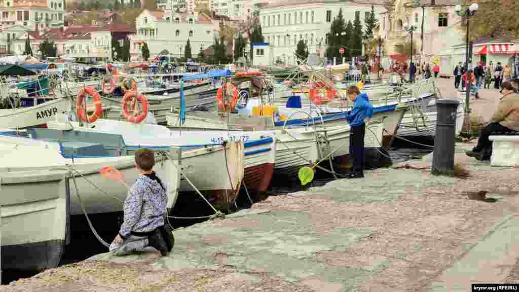 Набережная Назукина в Балаклаве приобрела свой современный вид более ста лет назад, а строить ее начали англичане во время Крымской войны. В эти осенние дни здесь гуляют местные жители и туристы, а балаклавские мальчишки сачками ловят крабов.